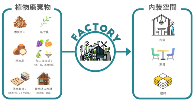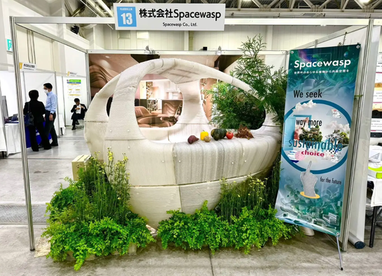 岐阜県に株式会社Spacewasp(スペースワスプ)というスタートアップ企業があります。この企業は木材や植物廃棄物から樹脂を抽出し、独自の樹脂加工技術を用いて、独自開発した3Dプリンターを使って全自動で内装材、家具、建材を製造します。